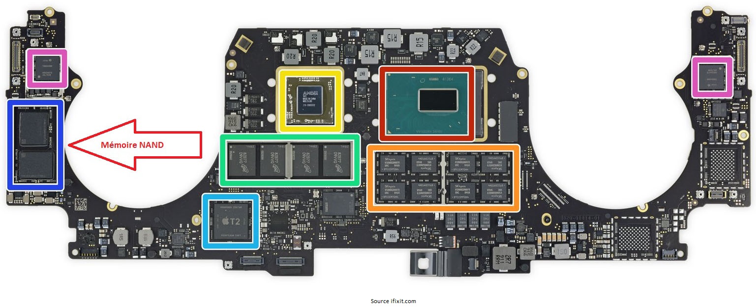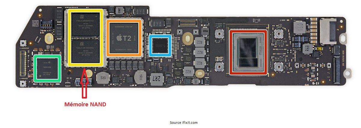 Macbook 12 A1534 2015-2017 et Macbook Pro et Air 2017-2024 ont soudé le disque dur SSD (les mémoires NAND) sur la carte mère, et il est alors très difficile de récupération les données et contient la puce de protection chiffrement (cryptage) des données du constructeur. Nous avons plus 10 ans expérience dans le domaine de la récupération de données et la réparation les cartes mères de Mac, permettant ainsi d'augmenter les taux de réussite de récupération de données.